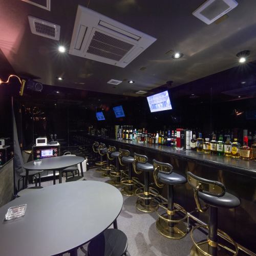 テーブル4名様×2卓のテーブル席をご用意してます!貸切宴会にも対応可能で、気兼ねなく楽しめる空間になっています☆カラオケ設備も完備しており、歌いながらお酒を楽しむ特別なひとときを演出します。黒を基調にした内装は高級感を演出し、照明の明暗が心地よい雰囲気を醸し出しています◎お気軽にお越しください。